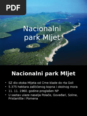 Mljet je zapravo ostrvo u jadranskom moru, nadomak dubrovnika, a nacionalni park čini trećina ostrva, i to zapadna strana. Nacionalni park mljet obuhvaća područje od 5 375 hektara koji uključuje zaštićeni dio kopna i mora koje se nalazi u neposrednoj blizini što naravno uključuje bogat biljni i životinjski svijet koji tamo. National park mljet is located on the western part of the homonymous island mljet. The national park includes the western part of the island, veliko jezero, malo jezero, soline bay and a sea belt 500 m wide from the most prominent cape of mljet covering an area of 54 km2. Nacionalni park mljet obuhvaća veći dio otoka;